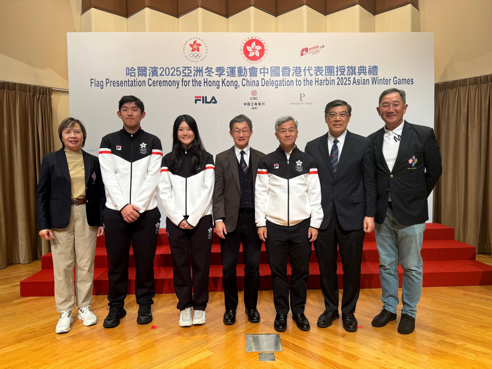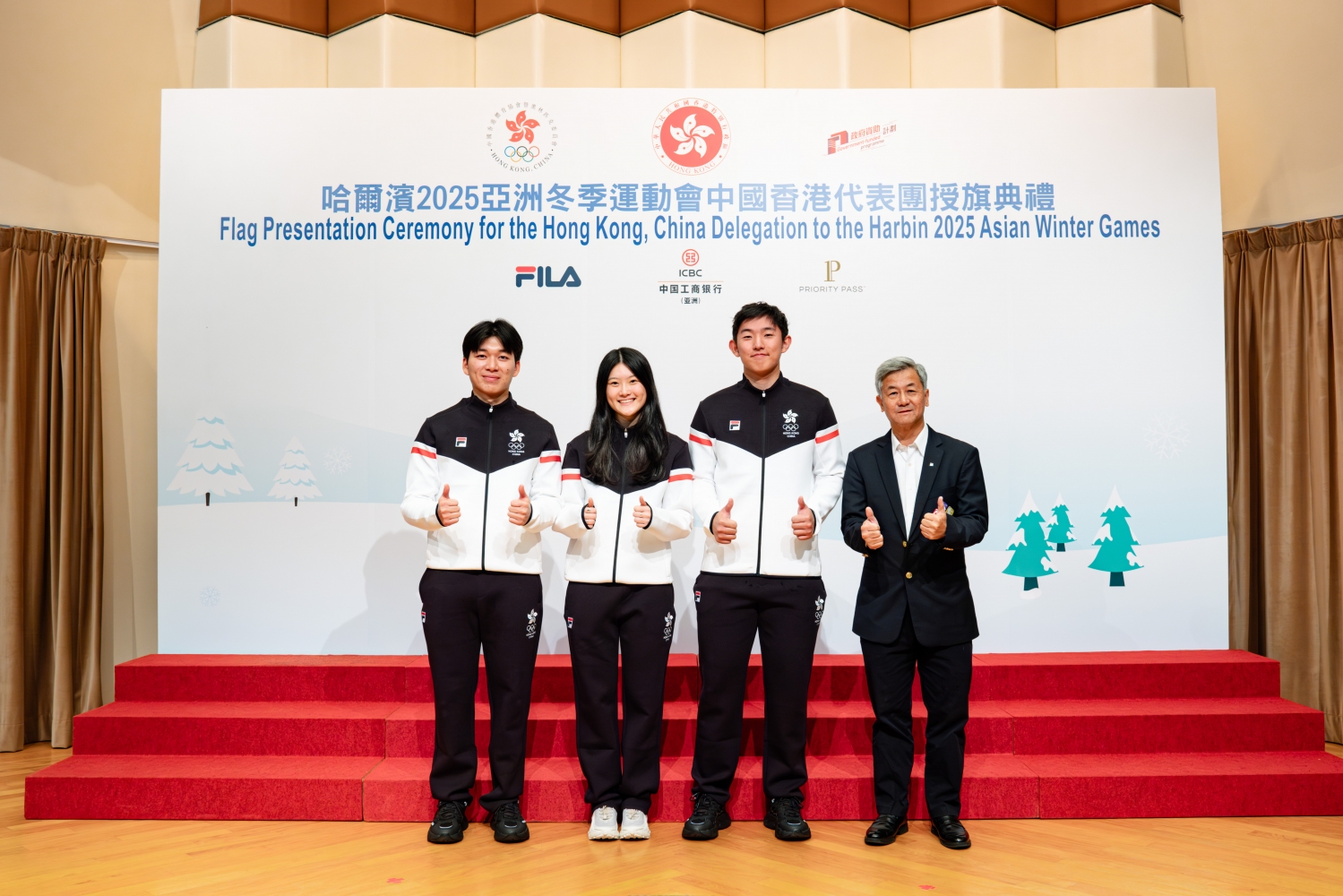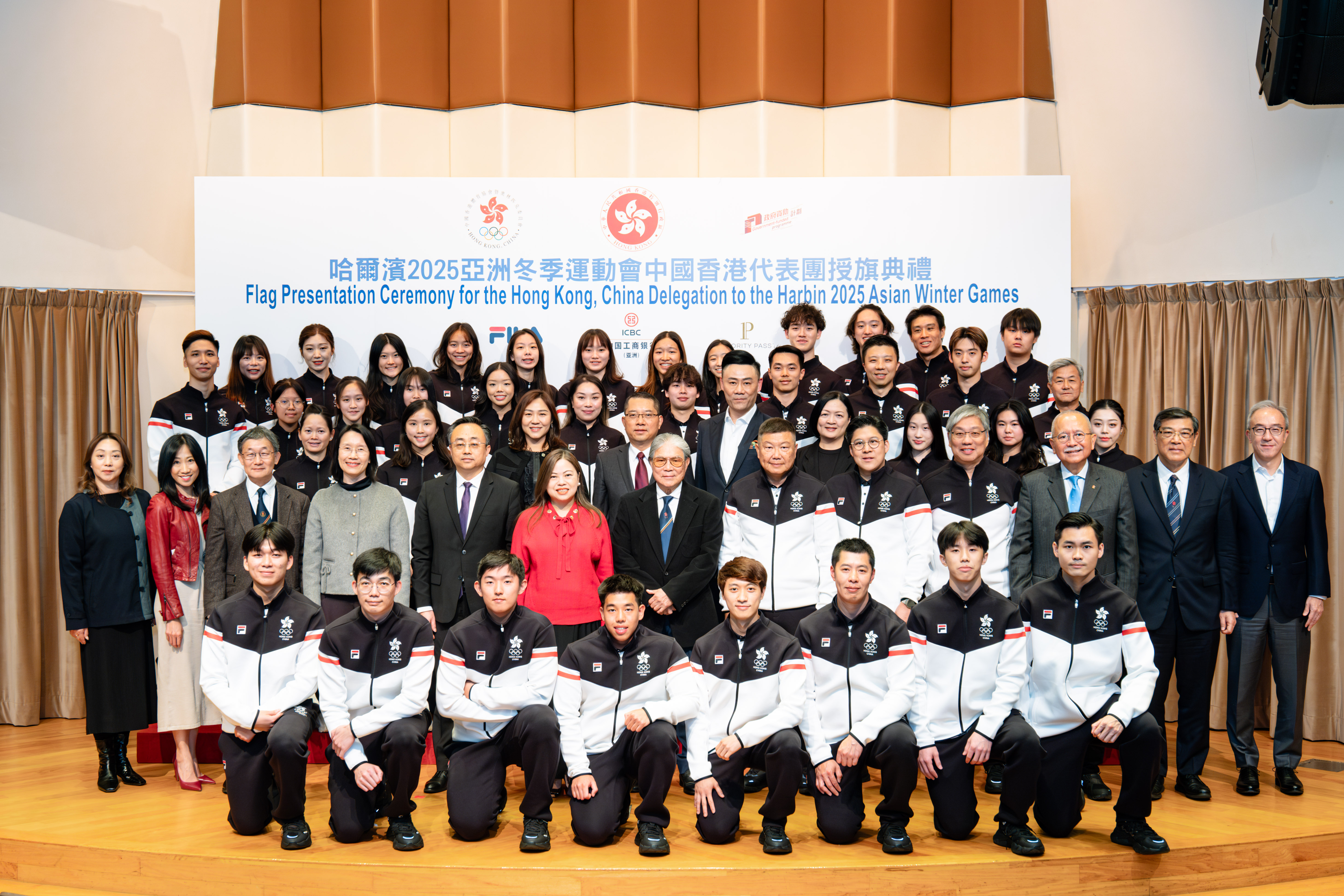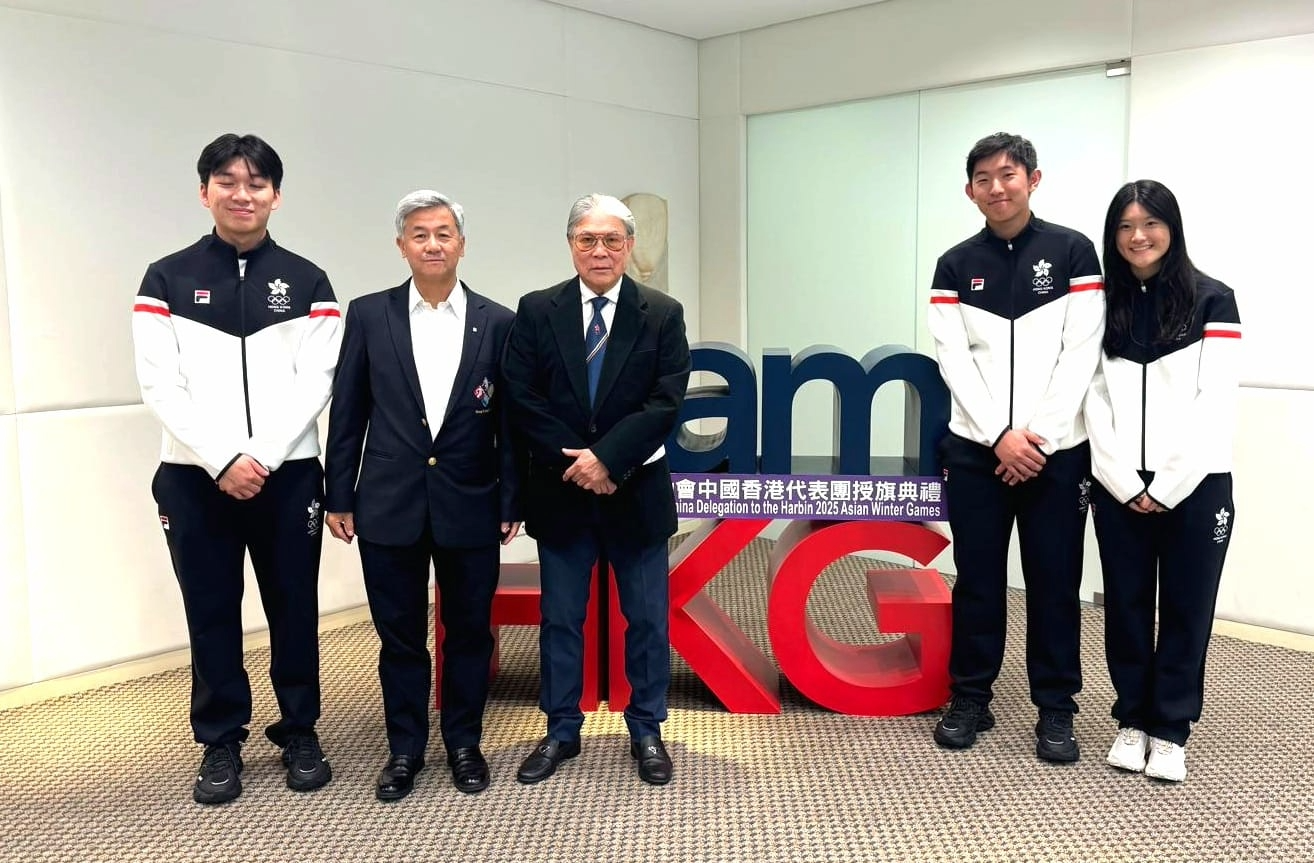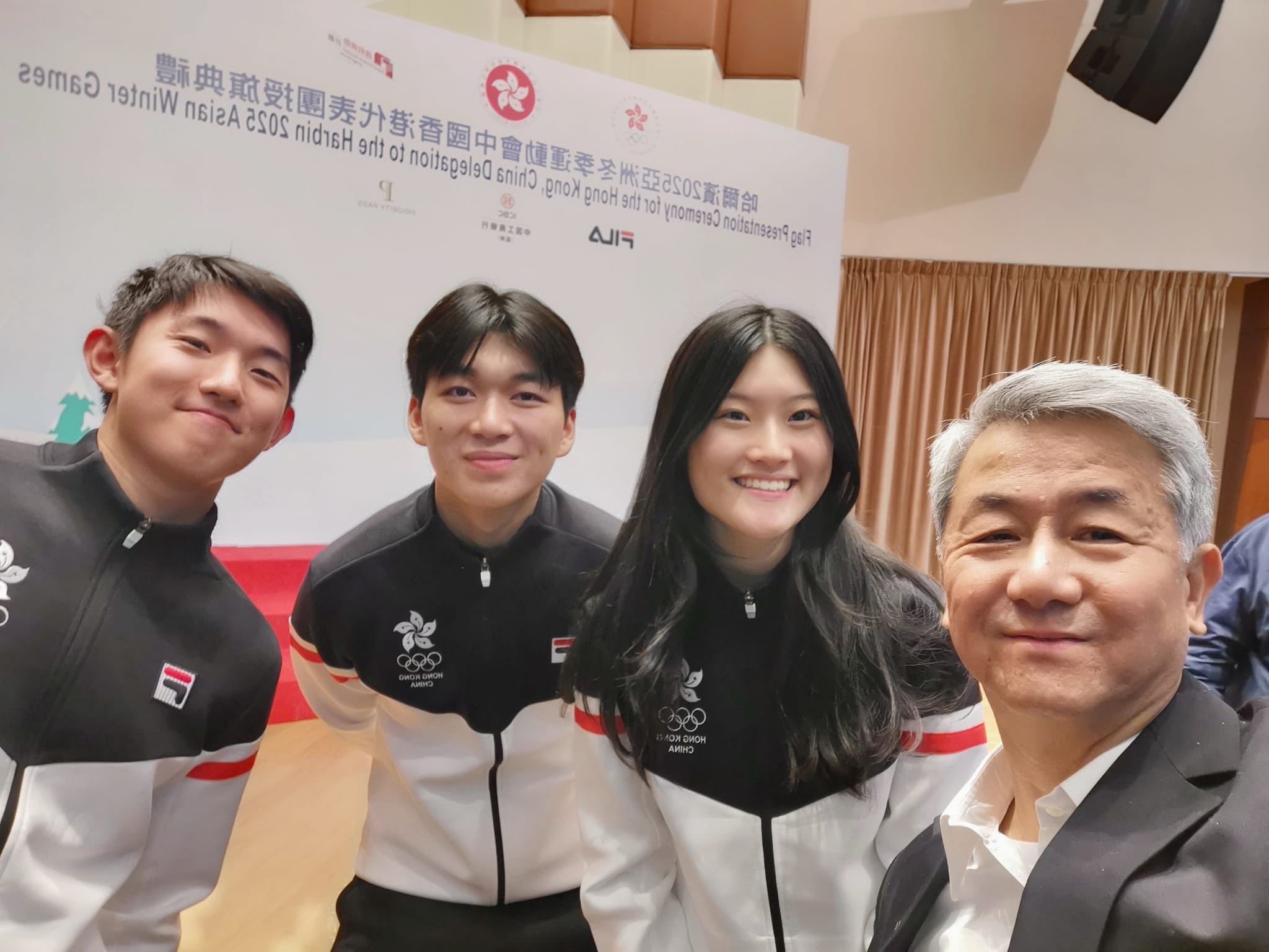 SAHK Chairman Edmond Yue attended the SF&OC Flag presentation ceremony for the 2025 Harbin Asian Winter Games, alongside present athletes Aerin KING, Kin Pok LU & Adrian YUNG. Athletes absent from the ceremony, but will be attending the games include, Eloise KING, Isabella KAO, Lucas WONG, Anthony WU and Samantha Zhong. Along with other high profile members of the Hong Kong sports community, Chairman Mr. Edmond Yue bid good luck to our athletes who will be racing at games from February 8th to 9th 2025.